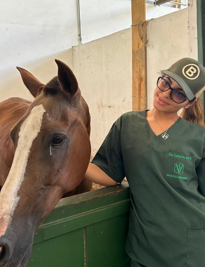 A trajetória da Ana na pesquisa de hemoparasitas em equinos foi um divisor de águas em sua formação. Muito além do laboratório, ela enfrentou o desafio do campo: a coleta de sangue.